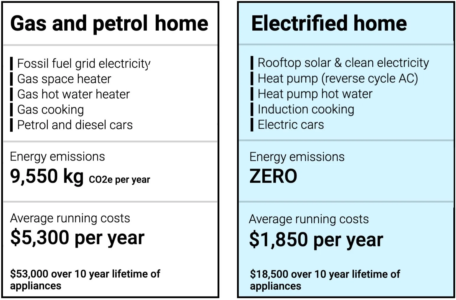 Electrifying your home and vehicle will save the average Australian household around $5,000 every year (and reduce household emissions close to zero)! -